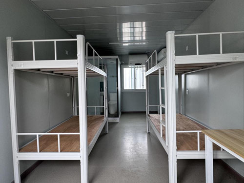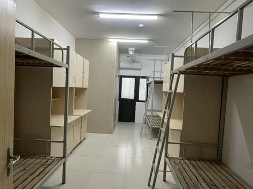 公寓內(nèi)設(shè)集宿區(qū)和生活服務(wù)配套區(qū),集宿區(qū)有14個管理單元,每個管理單元有20個房間,其中有1間洗衣房(兼開水房),每個房間可住4人,均配置獨立衛(wèi)生間,兩張高低床,空調(diào)和熱水器等設(shè)施。