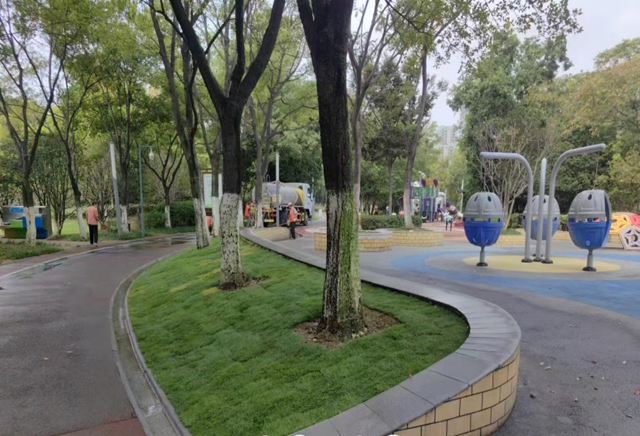 截至目前,在補植方面,補種草坪、麥冬3500平方米,補植大葉黃楊、金邊黃楊、紅葉石楠等2200平方米,補植各類喬木紫葉李、海棠、櫸樹等125株,撒播草坪草籽3.7萬平方米;在養(yǎng)護方面,修剪喬灌木1.1萬株、清理枯枝、死樹2500株,清理綠化帶落葉、雜物8.2萬平方米。