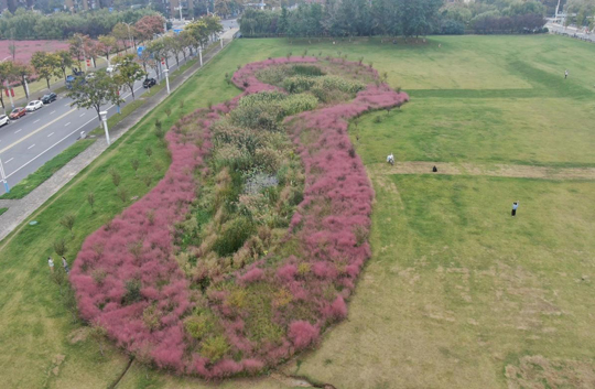 在中央商區(qū),成片的粉黛亂子草正值最佳觀賞期,云霧般的粉色花穗在陽(yáng)光下輕盈搖曳,已成為市民爭(zhēng)相打卡的“網(wǎng)紅”景點(diǎn)。“粉黛亂子草觀賞性雖高,養(yǎng)護(hù)卻需格外精心。”建發(fā)公司相關(guān)負(fù)責(zé)人介紹,為維持其最佳觀賞狀態(tài),園區(qū)采取了分區(qū)、分時(shí)的精細(xì)化養(yǎng)護(hù)策略。盛花期期間,養(yǎng)護(hù)人員會(huì)精準(zhǔn)控制澆水量,避免過多水分影響花穗形態(tài);雨季則及時(shí)排水,嚴(yán)防積水導(dǎo)致爛根。同時(shí),還安排了專人全天巡視,引導(dǎo)游客在指定區(qū)域文明觀賞,并對(duì)局部受損區(qū)域?qū)嵤?ldquo;點(diǎn)對(duì)點(diǎn)”修復(fù),確保每一株粉黛都能以最美姿態(tài),展現(xiàn)秋天的溫柔與浪漫。