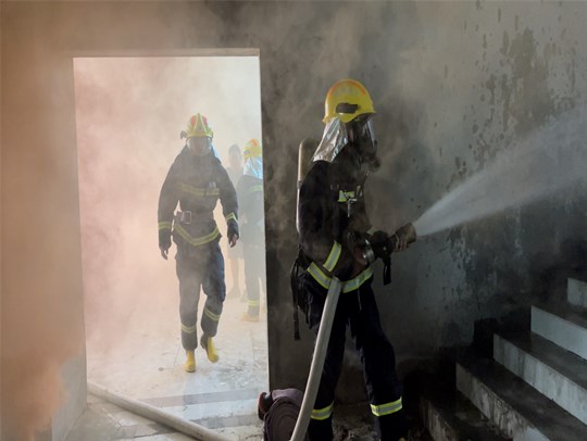 下午15點(diǎn)50分,科技物流園內(nèi)部突然起火,現(xiàn)場濃煙滾滾,相關(guān)工作人員立即采取自救措施,通知義務(wù)消防員有序組織人員疏散,消防官兵到場后,立即迅速組織對被困人員實施救援,及時堵截火勢、控制火情,經(jīng)過近30分鐘的滅火救援戰(zhàn)斗,大火被徹底撲滅,演練取得了圓滿成功。