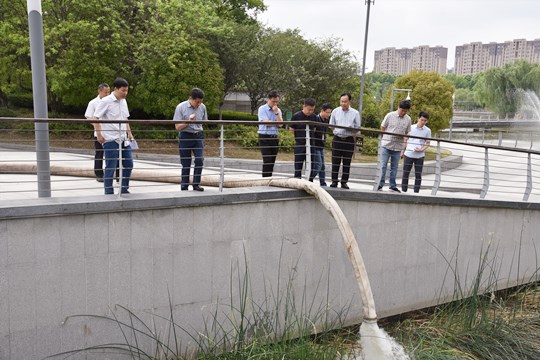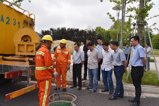 此次演練模擬園區(qū)連續(xù)普降暴雨,同里湖路部分道路出現(xiàn)嚴(yán)重積水,影響通行。接到險(xiǎn)情匯報(bào),園區(qū)立即啟動(dòng)防汛應(yīng)急預(yù)案,公司應(yīng)急搶險(xiǎn)組迅速趕到現(xiàn)場,放置警示標(biāo)志提醒車輛行人繞道通行。隨后根據(jù)現(xiàn)場查勘迅速制定排水方案,首先使用防汛應(yīng)急泵車抽排路面積水,隨后對積水路段管道進(jìn)行緊急疏通,最后采用CCTV檢測技術(shù)查明堵塞原因并制定后續(xù)維護(hù)方案。整個(gè)演練過程人員分工明確,搶險(xiǎn)反應(yīng)迅速,環(huán)節(jié)銜接流暢。