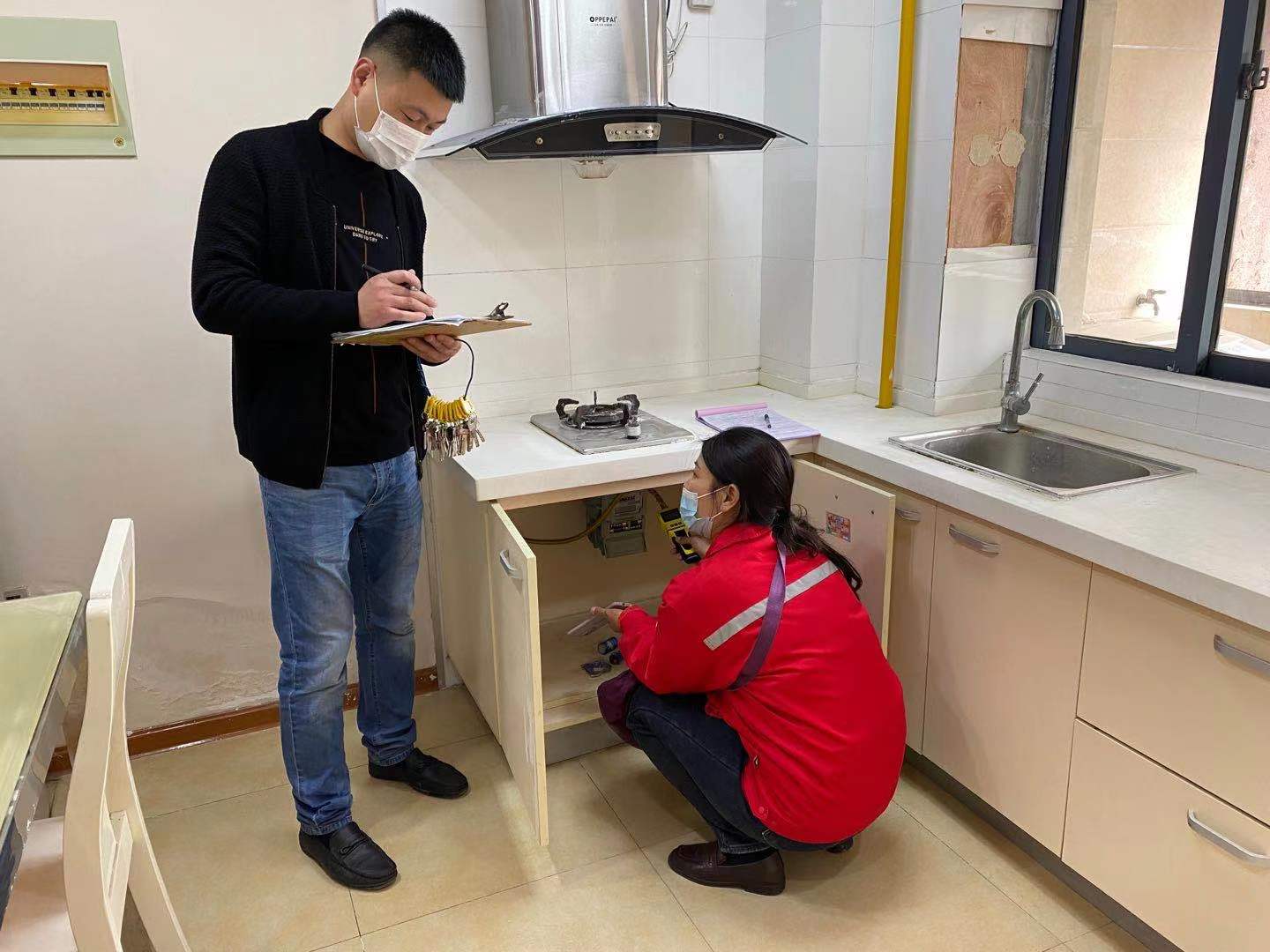 此次重點檢查天然氣接口軟管是否老化,燃氣灶具是否有熄火保護措施,燃氣閥門是否正常使用。在檢查過程中,發(fā)現(xiàn)了人走未斷氣、廚房操作間操作不通風(fēng)、線路交叉重疊等現(xiàn)象,客戶均能配合整改。