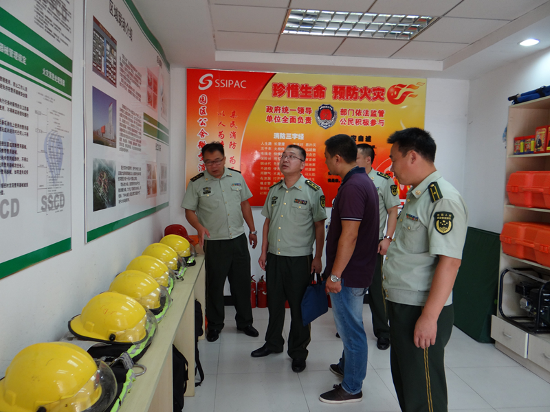 7月19日上午,宿遷市消防支隊(duì)副支隊(duì)長丁遠(yuǎn)營到園區(qū)檢查夏季消防安全工作,園區(qū)消防大隊(duì)大隊(duì)長宗靈明、園區(qū)公舍安全負(fù)責(zé)人陪同檢查。
