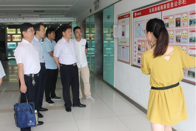 于堅(jiān)強(qiáng)一行先后參觀了東吳尚城美食城和園區(qū)公舍餐廳,聽(tīng)取了園區(qū)小餐飲集中區(qū)建設(shè)背景和運(yùn)營(yíng)狀況的介紹,并先后觀看了園區(qū)運(yùn)用移動(dòng)終端、二維碼等技術(shù)手段推動(dòng)明廚亮灶、遠(yuǎn)程監(jiān)管、社會(huì)共治的現(xiàn)場(chǎng)演示??疾熘?,于處長(zhǎng)對(duì)園區(qū)積極創(chuàng)新監(jiān)管手段,推動(dòng)社會(huì)共治,將小餐飲管理出高標(biāo)準(zhǔn)給予了充分肯定,他要求建發(fā)公司要進(jìn)一步創(chuàng)新監(jiān)管思路,加大食品管理力度,確保食品衛(wèi)生安全零事故。