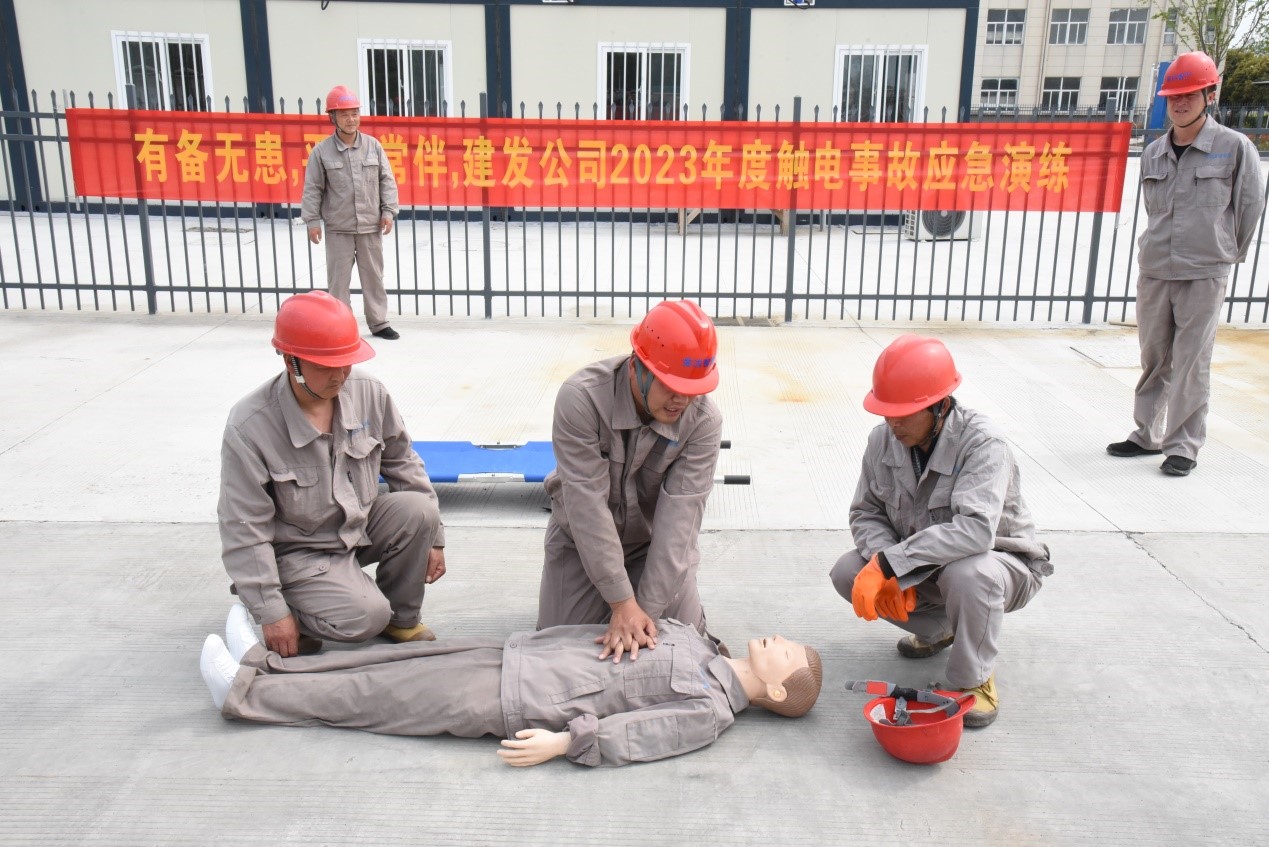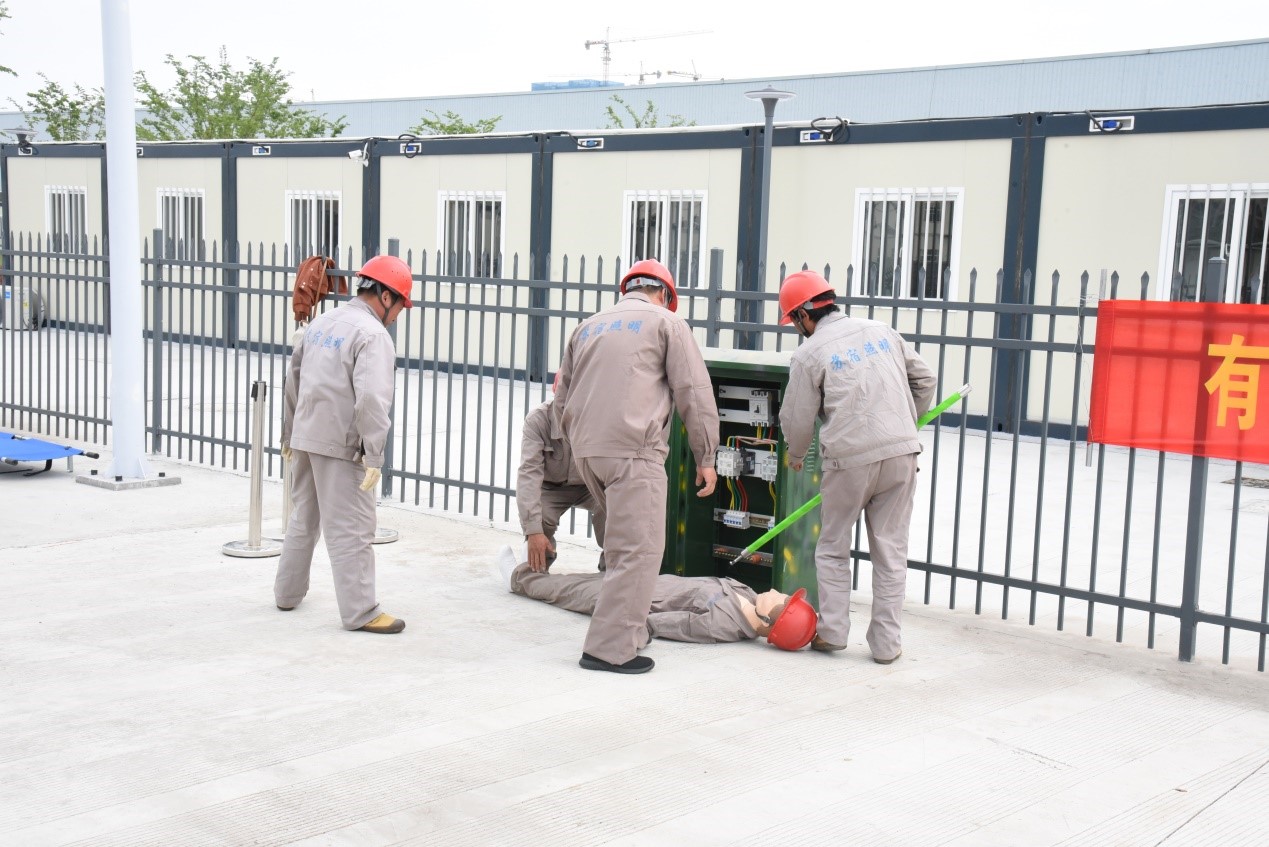 本次演練主要目的是熟悉人身觸電事故處理的流程,演練的重點突出在人身觸電后要及時斷開電源避免造成二次傷害和及時進行現(xiàn)場急救等措施。演練以路燈維修人員在進行配電柜內(nèi)部清潔時誤碰帶電部位發(fā)生人身觸電為主線,貫穿了從事故發(fā)生、現(xiàn)場救援、事故恢復、到預案關(guān)閉全過程。事故發(fā)生后,應急指揮小組立即發(fā)布應急預案啟動信號,并與就近醫(yī)療服務單位聯(lián)系,派人外出接應急救車輛;同時現(xiàn)場救援組迅速切斷配電柜電源,將觸電人員轉(zhuǎn)運至安全處進行搶救;警戒組立即疏散無關(guān)人員,設(shè)置警戒線,維持現(xiàn)場秩序。參演人員密切配合,相互協(xié)助,嚴格按照演練要求和現(xiàn)場指揮命令有條不紊開展救援行動,圓滿完成了此次演練任務。